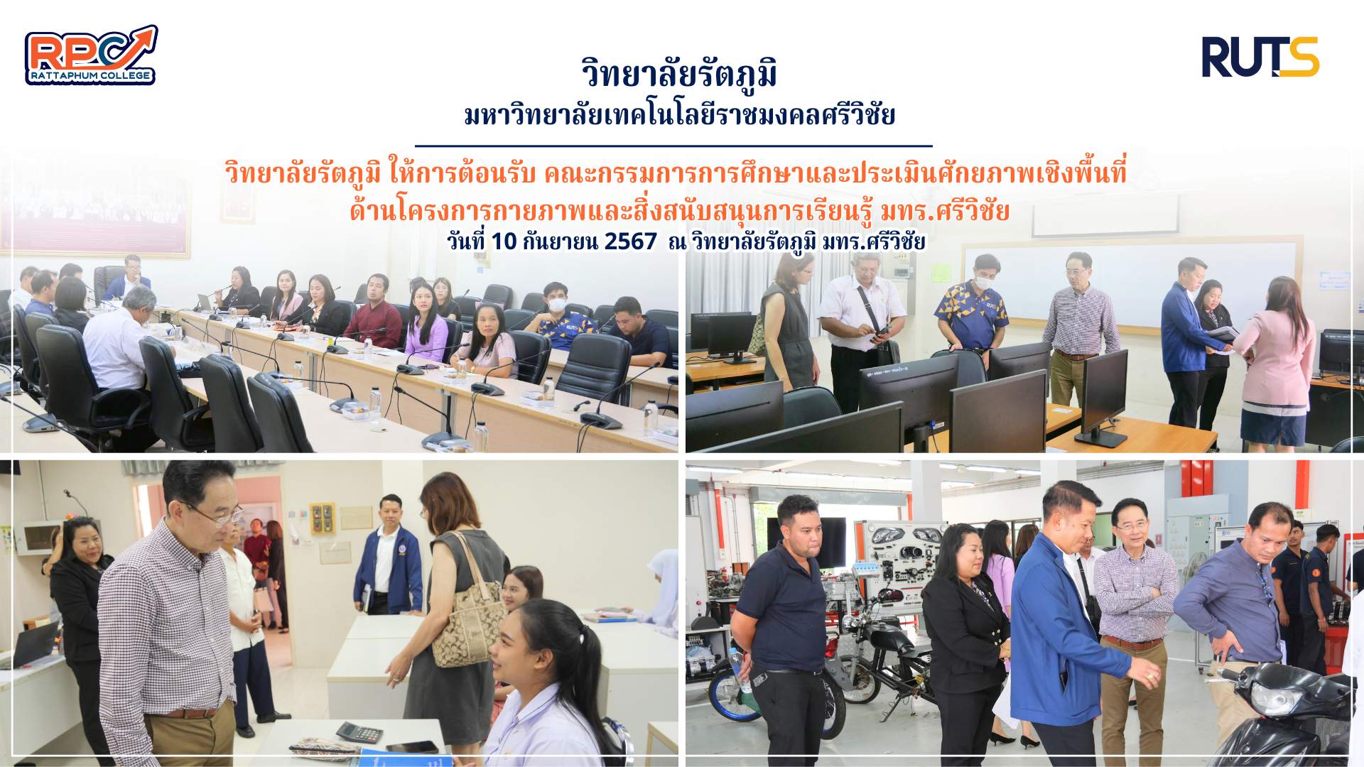 อาจารย์ธมลชนก คงขวัญ ผู้อำนวยการวิทยาลัยรัตภูมิ พร้อมด้วยคณะผู้บริหาร คณาจารย์ และบุคลากรวิทยาลัยรัตภูมิ ให้การต้อนรับ คณะกรรมการการศึกษาและประเมินศักยภาพเชิงพื้นที่ ด้านโครงสร้างทางกายภาพและสิ่งสนับสนุนการเรียนรู้ มทรศรีวิชัย ซึ่งเดินทางเข้าประชุมเพื่อยกระดับคุณภาพการเรียนการสอนและคุณภาพชีวิตของนักศึกษาและบุคลากร พร้อมทั้งลงพื้นที่เพื่อสำรวจครุภัณฑ์การศึกษาประจำห้องปฏิบัติการทดแทนรายการเดิม ร่วมกับผู้รับผิดชอบของหน่วยงานที่มีแผนตามความต้องการรายการครุภัณฑ์การศึกษาพื้นฐานประเภทรายการทดแทน