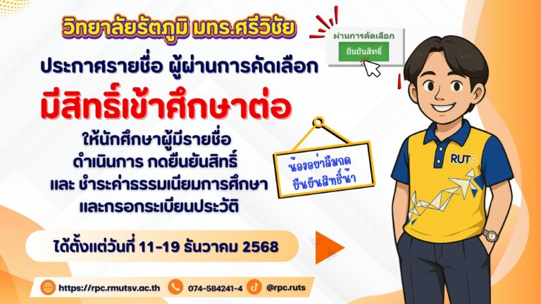 ประกาศรายชื่อผู้ผ่านการคัดเลือก และมีสิทธิ์เข้าศึกษาต่อ ระดับประกาศนียบัตรวิชาชีพชั้นสูง และระดับปริญญาตรี ประจำปีการศึกษา 2568